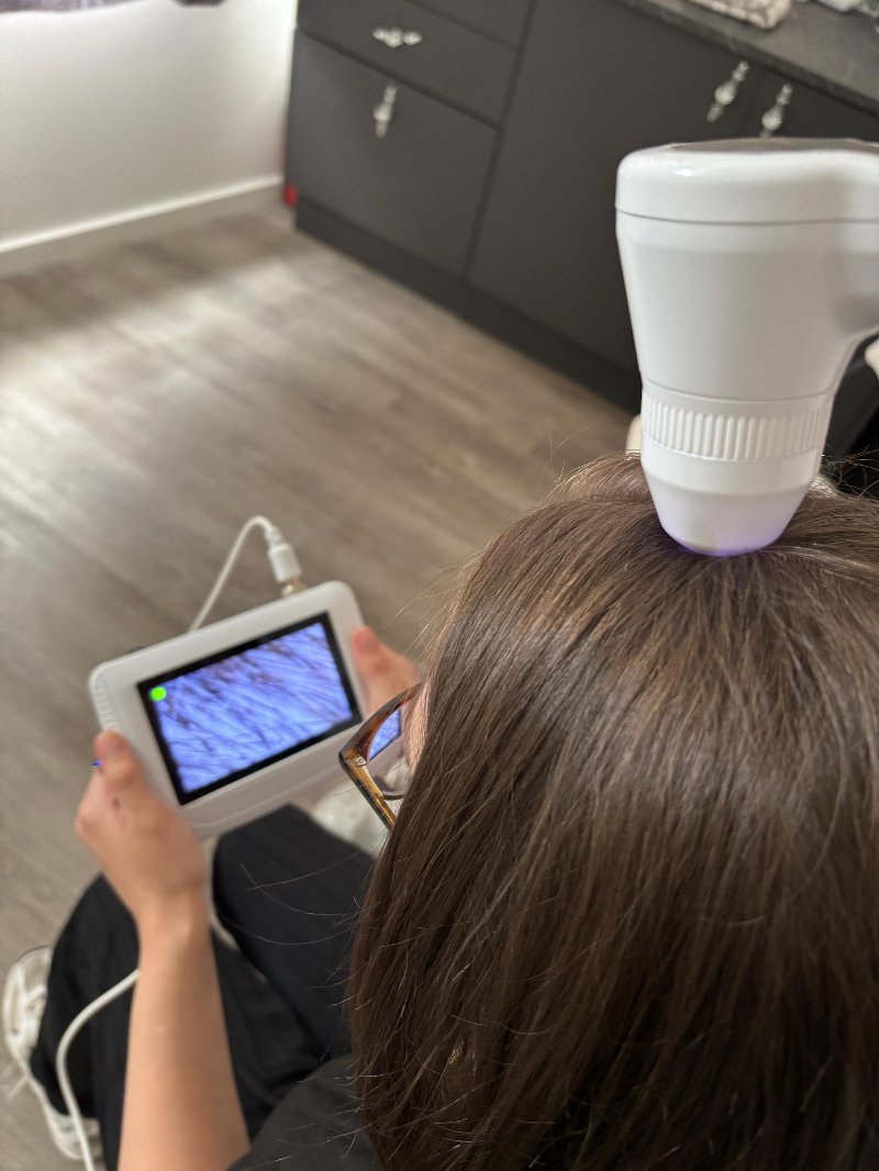 The treatment begins with a consultation to assess your scalp and hair needs.